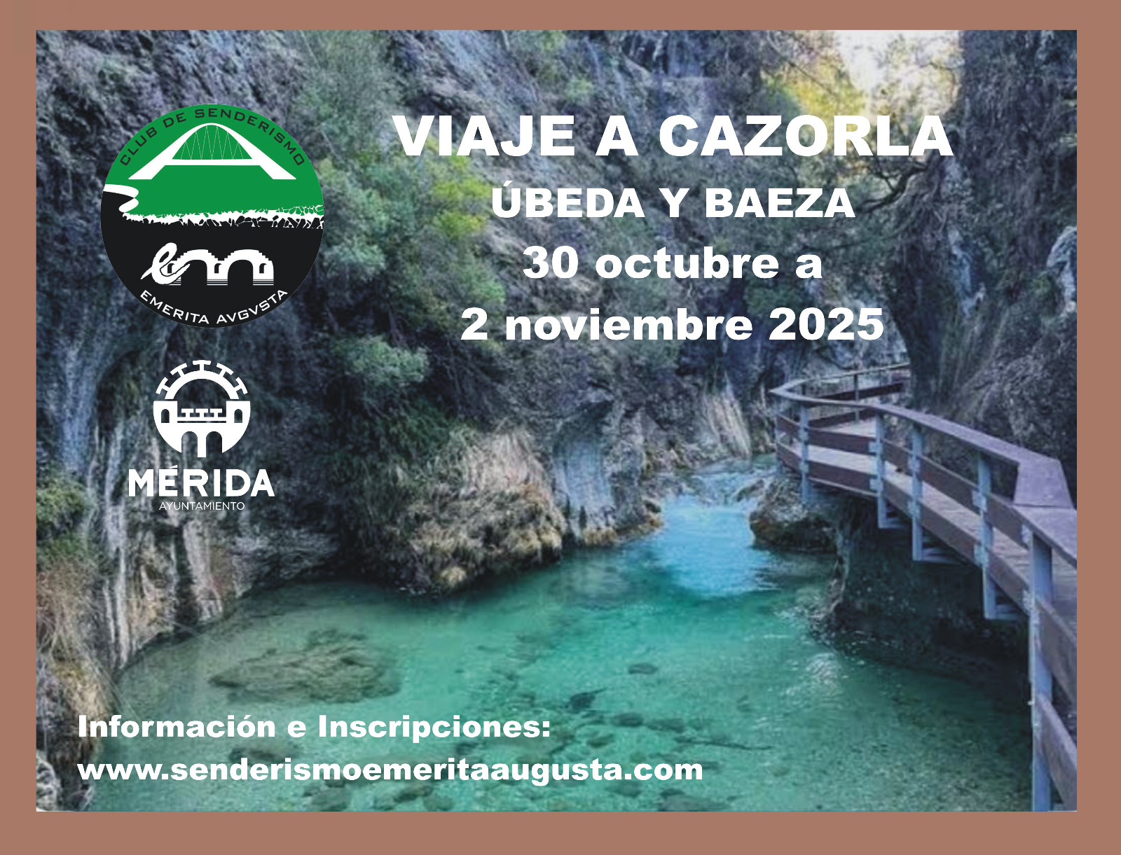 - Traslado en autobús privado desde Mérida a Cazorla y vuelta.